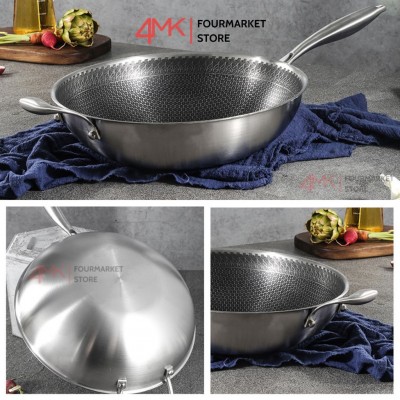 Chảo vân tổ ong chống dính lòng sâu 2 mặt Inox 304 size 32cm dùng được cho bếp từ tiện dụng