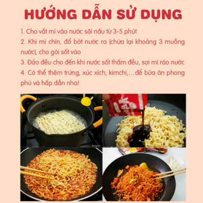 Hướng dẫn sử dụng: Cho gói mì vào đun sôi tầm 5 phút, luộc mì cho đến khi sợi mì