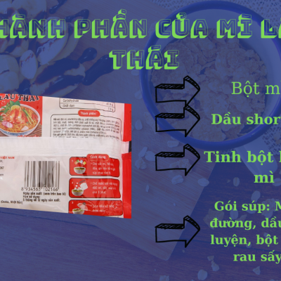 Thành phần: VẮT MÌ - Bột mì, shortening (dầu cọ, chất chống oxy hoá (BHA (320), BHT (321))), tinh bột, muối, đường, dịch chiết xuất từ cá, chất điều vị (mononatri glutamat (621)), chất ổn định (pentanatri triphosphat (451(i)), kali carbonat (501(i))), chất nhũ hoá (natri cacbonxymethyl cellulose (466)), chất điều chỉnh độ axit (natri carbonat (500(i))), các gia vị, phẩm màu (curcumin (100(i))). CÁC GÓI GIA VỊ - Dịch me, dầu tinh luyện (dầu cọ, chất chống oxy hoá (BHA (320), BHT (321)), muối, đường