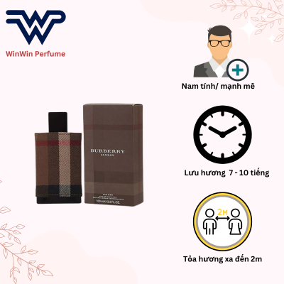 Dòng nước hoa nam Burberry London For Men Eau de Toilette (EDT) dành cho phái mạnh của thương hiệu Burberry mang hương vị cay nồng phương Đông, ra mắt vào năm 2006 và người sáng tạo ra dòng nước hoa này là Antoine Maisondieu. Nước hoa Burberry London for Men là biểu tượng cho vẻ đẹp hiện đại, thanh lịch mang đến cho bạn sự lịch lãm của một quý ông từ xứ sở sương mù, như một bức tranh thu nhỏ của lối sống tự do, thoải mái tại thành phố London.
