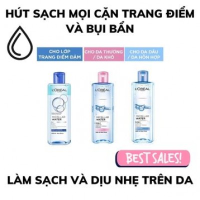 | Tên sản phẩm | Nước Tẩy Trang L'Oreal Tươi Mát Cho Da Dầu, Hỗn Hợp 400ml Micellar Water 3-in-1 Refreshing Even For Sensitive Skin |