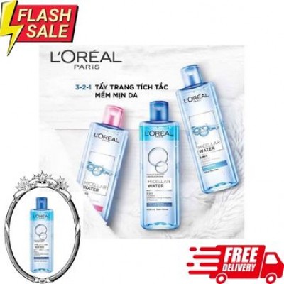 Nước Tẩy Trang L'Oréal Paris 3-in-1 Micellar Water Refreshing (xanh dương nhạt) ứng dụng công nghệ Micellar mới chứa các phân tử mi-xen độc đáo hoạt động như một thỏi nam châm giúp loại bỏ hoàn toàn bụi bẩn và lớp trang điểm, đồng thời làm dịu da nhờ thành phần nước khoáng từ những ngọn núi ở Pháp, mang lại làn da tươi tắn hơn sau khi tẩy trang. Kết cấu dạng nước tươi mát, dễ sử dụng, không cần rửa lại với nước mà vẫn không gây nhờn dính da.