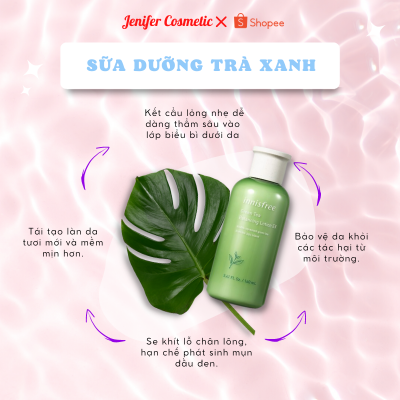 Sữa dưỡng cân bằng trà xanh của innisfree: Đây là dòng trà xanh mới nhất trong năm 2014 của innisfree ra mắt thị trường. Với chiết xuất từ trà xanh, sữa dưỡng green tea balancing lotion mang lại cho bạn một làn da sạch và không mụn nhọt.