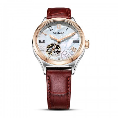 - Phiên bản Lady Open Heart của dòng Citizen Mechanical Flower có bộ chuyển động tự động, vỏ bằng thép không gỉ rose kiêu sang . Lên cót tay dự trữ năng lượng trong 40 giờ sau khi lên dây hoàn toàn.