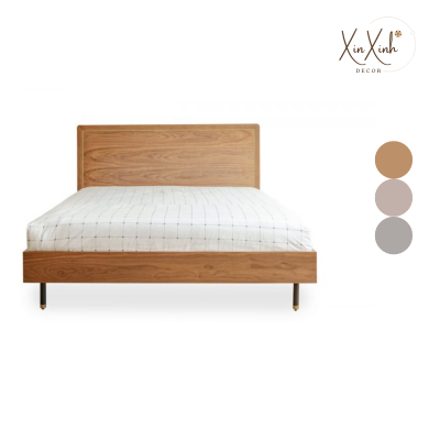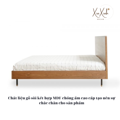 Chất liệu: khung giường được làm bằng chất liệu gỗ thông phủ lớp MDF veener ash cao cấp, chân giường được làm từ kim loại được sơn đen chắc chắn, có khả năng chịu lực tốt