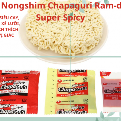 Thông tin sản phẩm: Sợi mì vàng dai ngon hòa quyện trong nước súp mì Nongshim siêu cay cực đã cực đậm đà thấm đều trong từng sợi mì sóng sánh cùng hương thơm quyến rũ. Mì Nongshim Chapaguri Ram-don siêu cay gói 140g là lựa chọn cực hấn dẫn không thể bỏ qua cho những tín đồ mì Hàn Quốc
