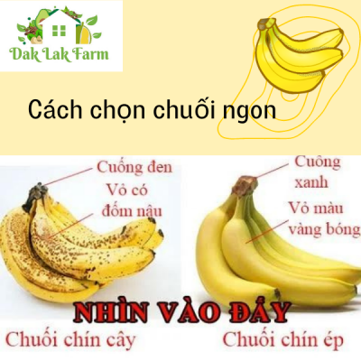 Bạn nên ưu tiên chọn mua những quả chuối chín nhưng có quả xanh quả vàng. Những quả này thường là chín tự nhiên, những quả chín nhờ thuốc sẽ có màu vàng đều rất đẹp mắt.