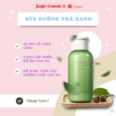 Sữa dưỡng cân bằng trà xanh của innisfree: Đây là dòng trà xanh mới nhất trong năm 2014 của innisfree ra mắt thị trường. Với chiết xuất từ trà xanh, sữa dưỡng green tea balancing lotion mang lại cho bạn một làn da sạch và không mụn nhọt.