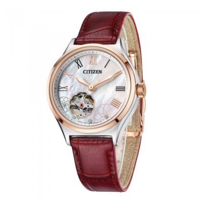 - Phiên bản Lady Open Heart của dòng Citizen Mechanical Flower có bộ chuyển động tự động, vỏ bằng thép không gỉ rose kiêu sang . Lên cót tay dự trữ năng lượng trong 40 giờ sau khi lên dây hoàn toàn.