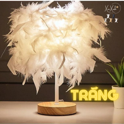 Đèn ngủ̉ pin mini Xinxinh lông vũ để bàn