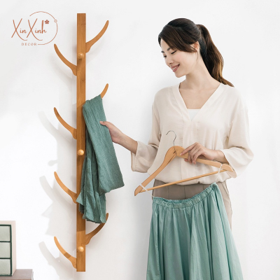 | Tên sản phẩm | Giá treo tường gắn 6 móc treo quần áo trang trí decor, chất liệu gỗ cao cấp |