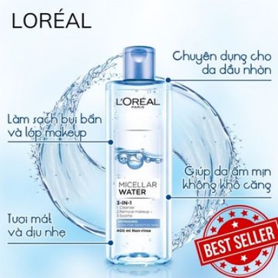 Nước Tẩy Trang L'Oreal Tươi Mát Cho Da Dầu, Hỗn Hợp 400ml Micellar Water 3-in-1 Refreshing Even For Sensitive Skin